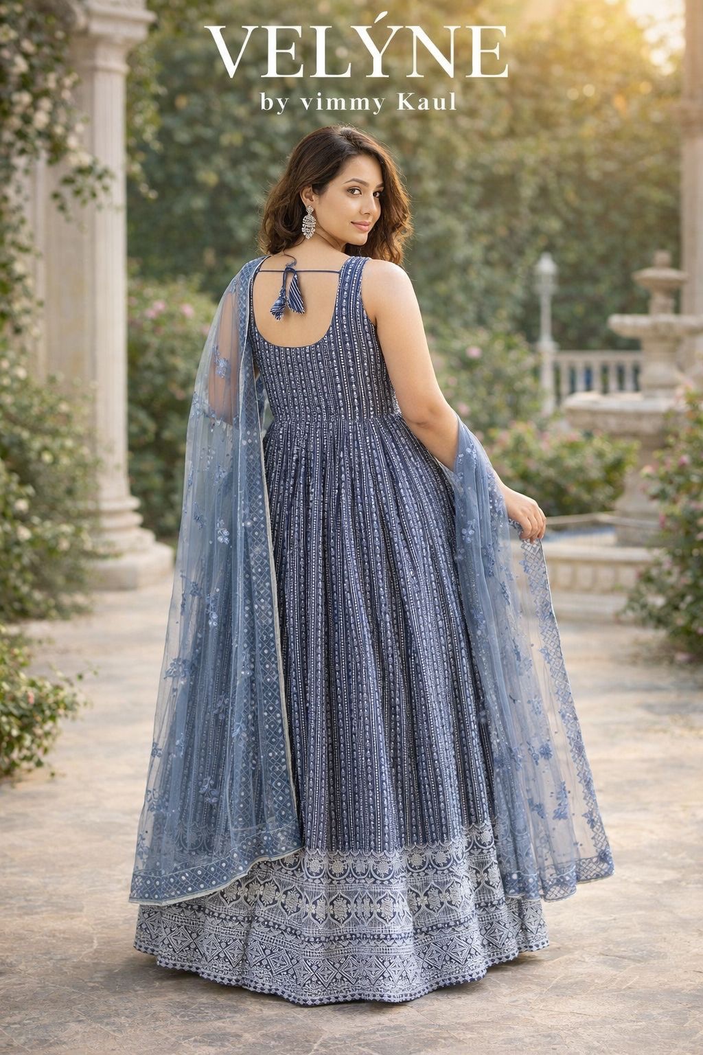Home Indowestern Azure grey Royale Embroidered Anarkali Set
